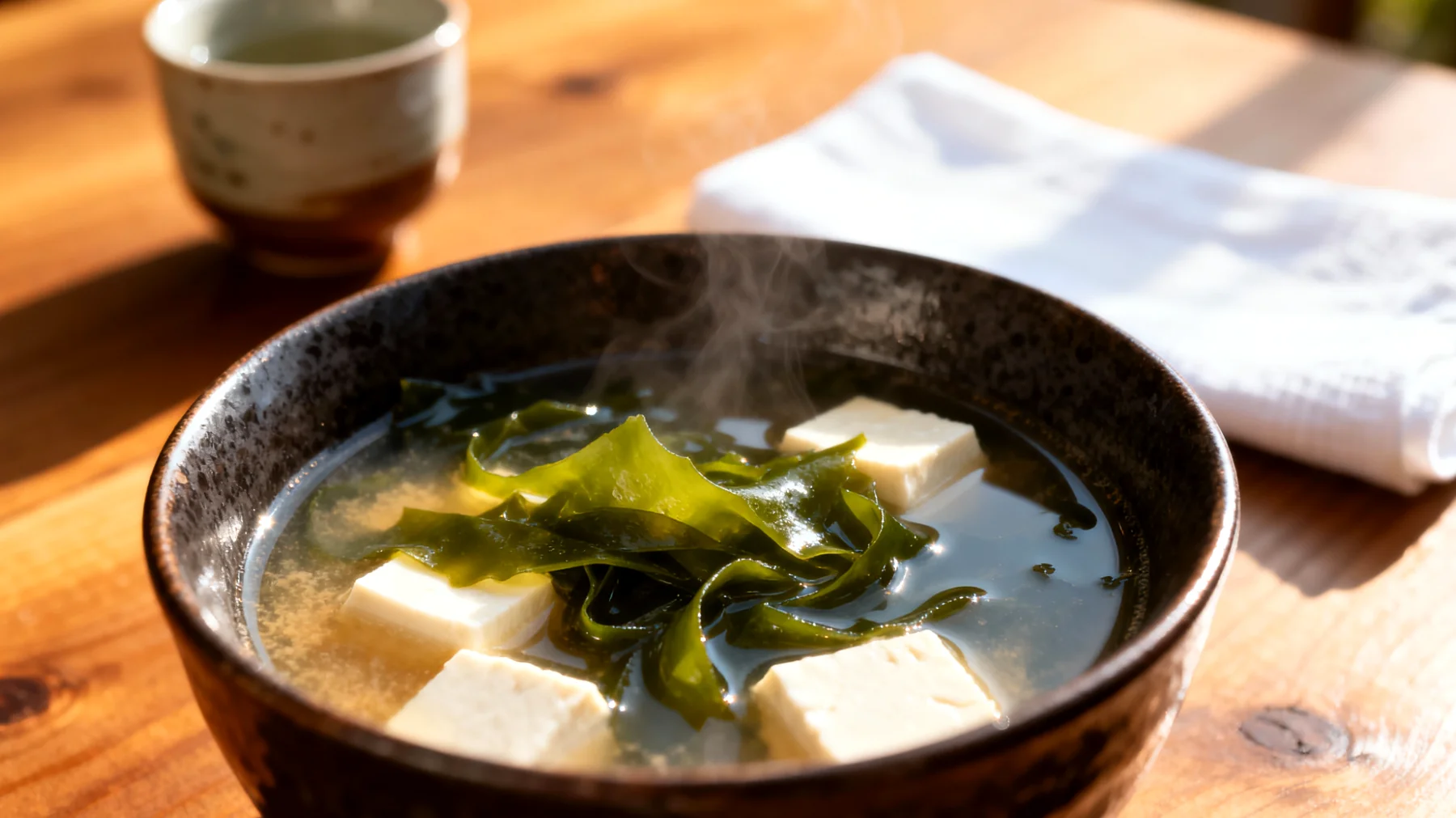 Le secret de cette soupe réside dans l’association intelligente de trois composants aux propriétés complémentaires. Le miso, cette pâte de soja fermentée traditionnellement pendant plusieurs mois, constitue le socle aromatique et probiotique du bouillon. Les algues wakame, véritables concentrés minéraux des océans, apportent une dimension reminéralisante souvent négligée dans l’alimentation occidentale. Quant au tofu soyeux, sa texture onctueuse cache une densité protéique remarquable, parfaitement assimilable par l’organisme.