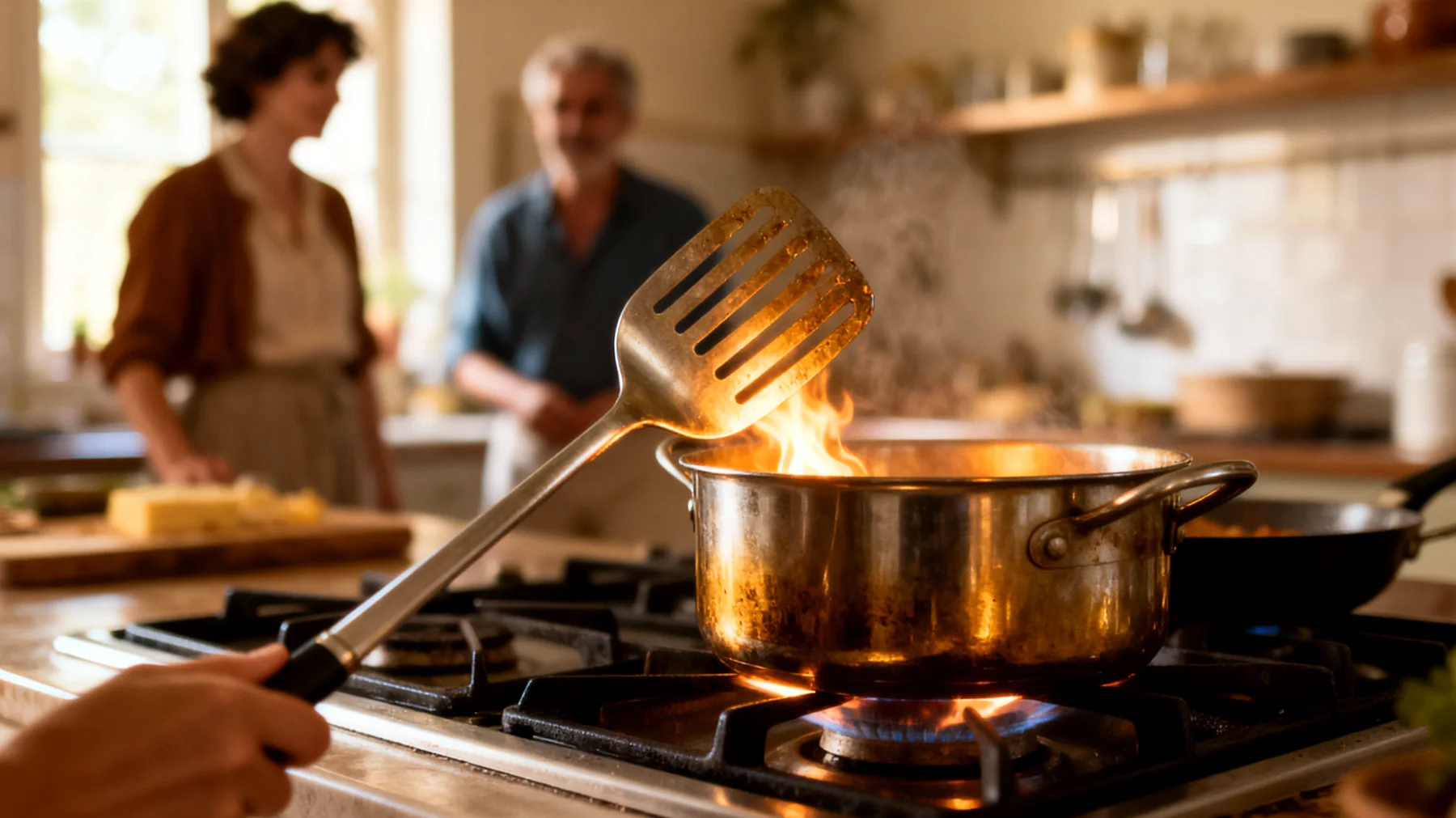 Au-delà du simple inconfort, cette caractéristique soulève une question d’efficacité énergétique. Lorsqu’un ustensile métallique absorbe de la chaleur pendant la cuisson, cette énergie ne contribue ni à la transformation des aliments ni à l’amélioration de la préparation. Elle se disperse simplement dans l’environnement ou se transmet vers la main de l’utilisateur. Ce transfert représente une forme de perte thermique, aussi minime soit-elle. Chauffer un ustensile métallique ne fait aucunement progresser la cuisson, et pourtant, dans les cuisines du monde entier, cette situation se répète quotidiennement sans qu’on y prête attention.