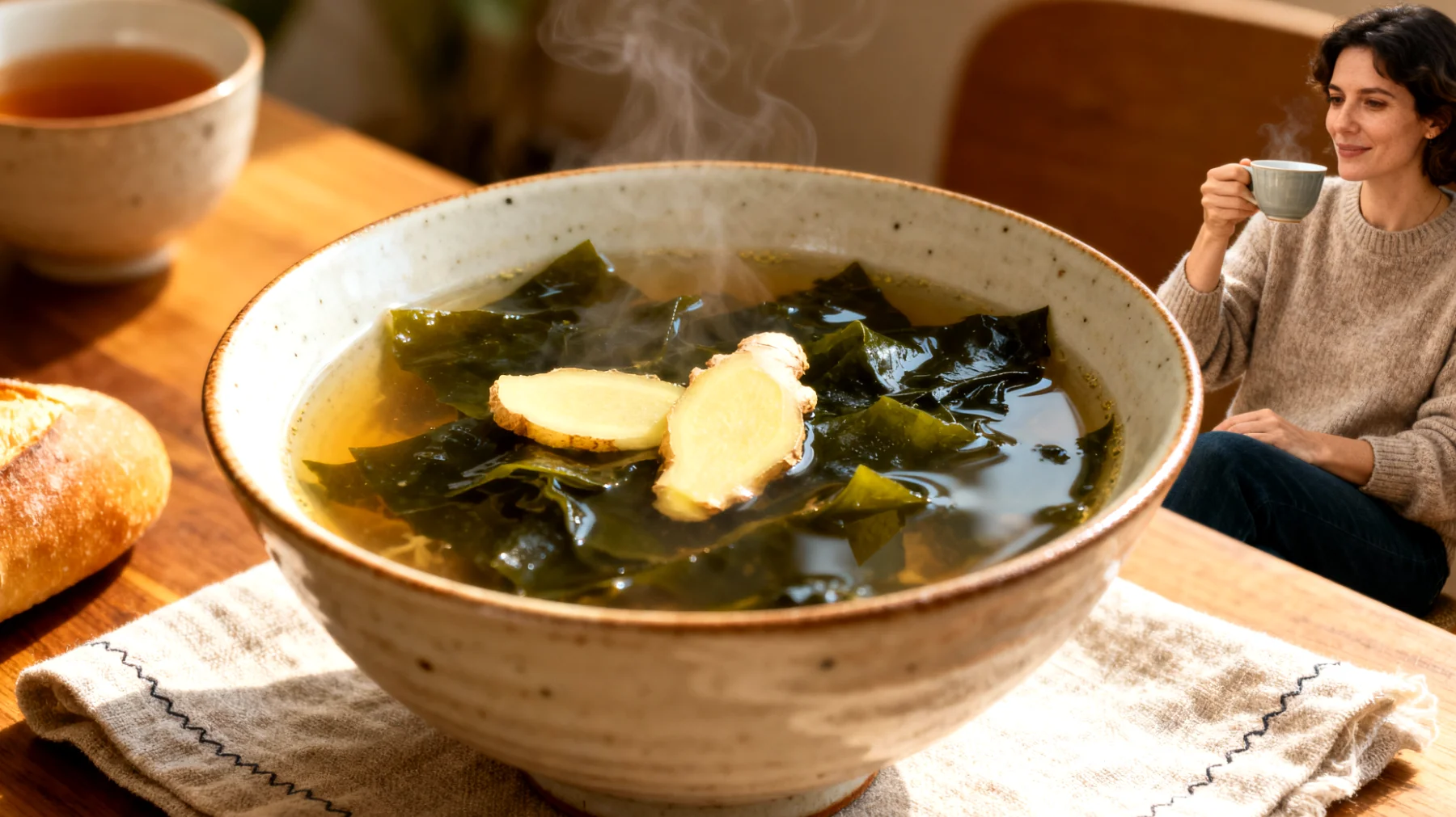 Le wakame constitue également une source exceptionnelle d’iode et de magnésium, deux minéraux fréquemment déficitaires chez les personnes soumises à un stress chronique. L’iode soutient la **fonction thyroïdienne**, tandis que le magnésium participe à la détente musculaire, y compris celle des muscles lisses de l’appareil digestif. Cette combinaison explique pourquoi cette soupe procure cette sensation de **réconfort profond** sans alourdir l’organisme.